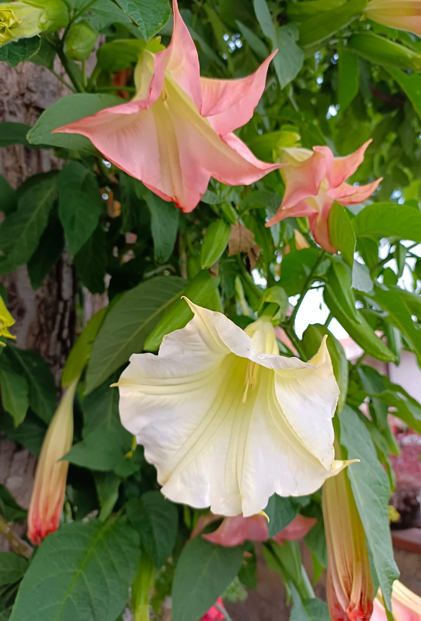 Tra questi ho apprezzato alcuni splendidi esemplari di Brugmansia, un tempo chiamati Datura, dai fiori dalle delicate tonalità di colore a forma di tromba e dal profumo soave e inebriante. Così come gli alberelli di fico comune, Ficus carica, cresciuti anche dove non dovevano o alcune piante di vite, Vitis vinifera, fatte arrampicare sulle pergole o sui muri per adornare qualche antico portone. L’edera, infestante e cocciuta, riesce sempre a sorprendermi per come ricopre, come le pennellate rapide e fitte di un artista impressionista, con un manto verde scuro alcuni spazi abbandonati e vecchi portoni. Mi ha molto incuriosito, perchè cresciuto ad alberello, un evonimo europeo (Euonymus europeus) in fioritura con le foglioline lucide ed i rami protesi verso un’antichissima dimora come ad indicarla ai passanti. Alla fine del lungo sopralluogo, fuori dal centro del borgo verso l’antica Torre, ho sentito il profumo inconfondibile della ginestra (Cytisus scoparius) e sono corsa ad ammirarla perchè è lei la specie più mediterranea di tutte, spontanea e selvaggia, osservatrice attenta delle alterne vicende della storia e delle stagioni che hanno attraversato e attraversano il borgo, arroccata nel punto più alto.