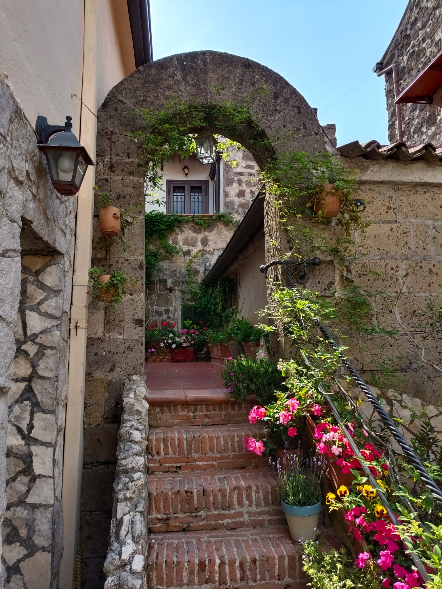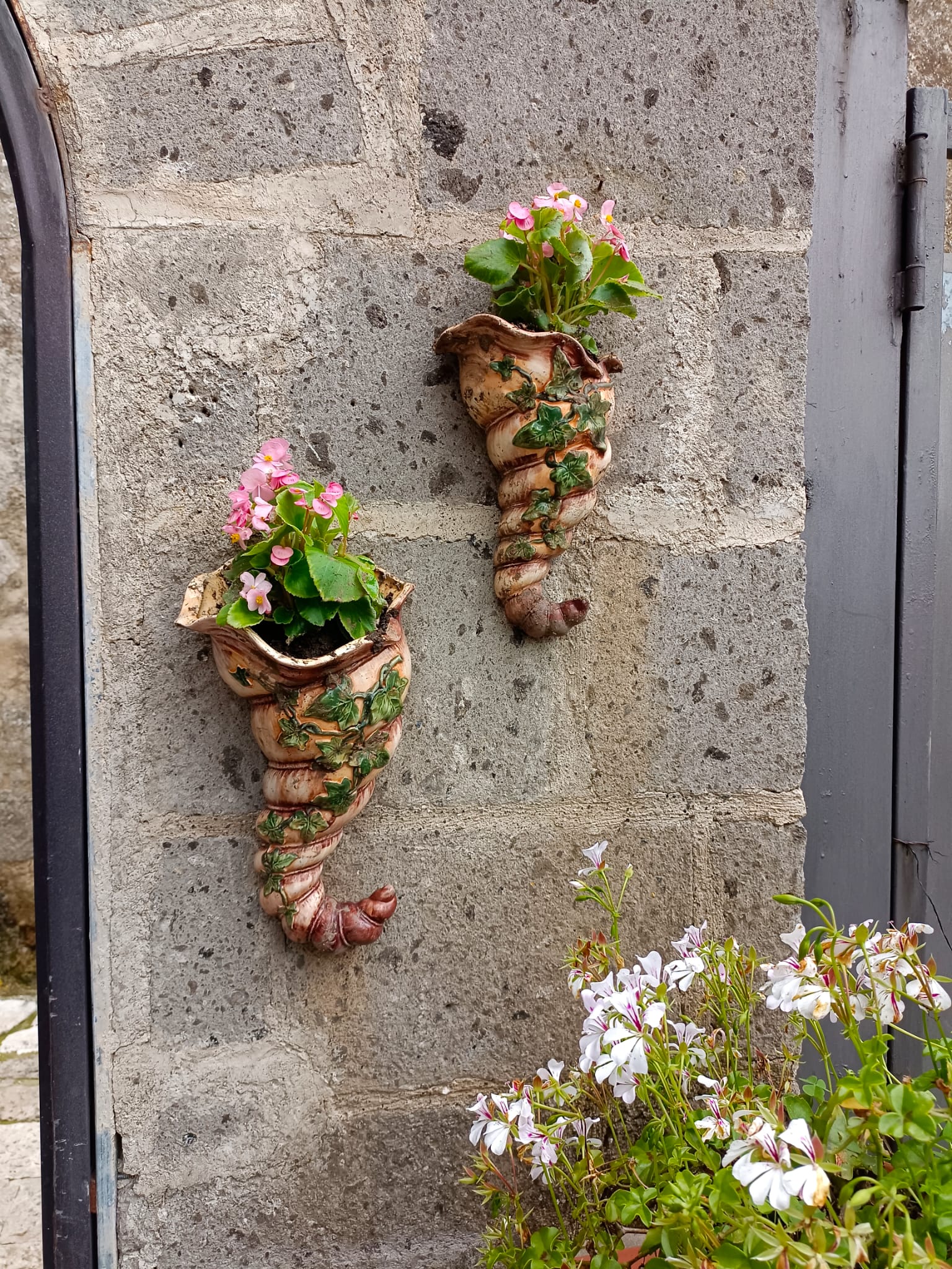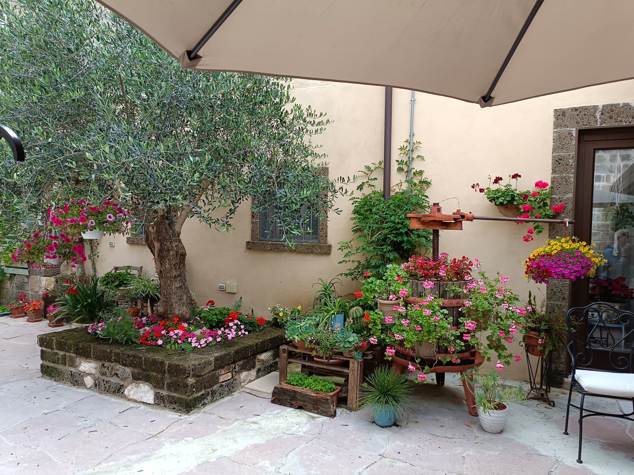 Nel primo pomeriggio di venerdì scorso, come concordato con la Pro Loco Casertantica, l’associazione Premio GreenCare sezione di Caserta si è incontrata in piazza Vescovado davanti al magnifico Duomo, capolavoro romanico con influenze arabo-siciliane, dedicato a San Michele Arcangelo, con le associazioni componenti la giuria della manifestazione “Casertavecchia in Fiore” per iniziare il sopralluogo attraverso le stradine in pietra del borgo alla scoperta degli allestimenti floreali dell’edizione 2023. Gli allestimenti floreali di quest’anno ci hanno riservato magnifiche sorprese perchè rinnovati con nuove specie sia nostrane che esotiche. Le composizioni erano arricchite da oggetti di antiquariato come un antico torchio per l’uva o attrezzi agricoli che un tempo venivano utilizzati per lavorare i campi, mentre gli utensili vintage di uso quotidiano in cucina come teiere, tazzine, piatti, mestoli, pentole, ceste, anfore accoglievano al loro interno piantine succulente, begonie, margherite, petunie, tradescansie, gerani e erano posizionati sui tavoli o semplicemente appesi alle pareti dei cortili o alle finestre rinascendo a nuova vita. Le azalee, le ortensie, le ligularie, gli agrumi, gli ulivi e le viti adornavano aiuole o si arrampicavano lungo le pergole per arricchire i cortili interni e creare angoli d’ombra.