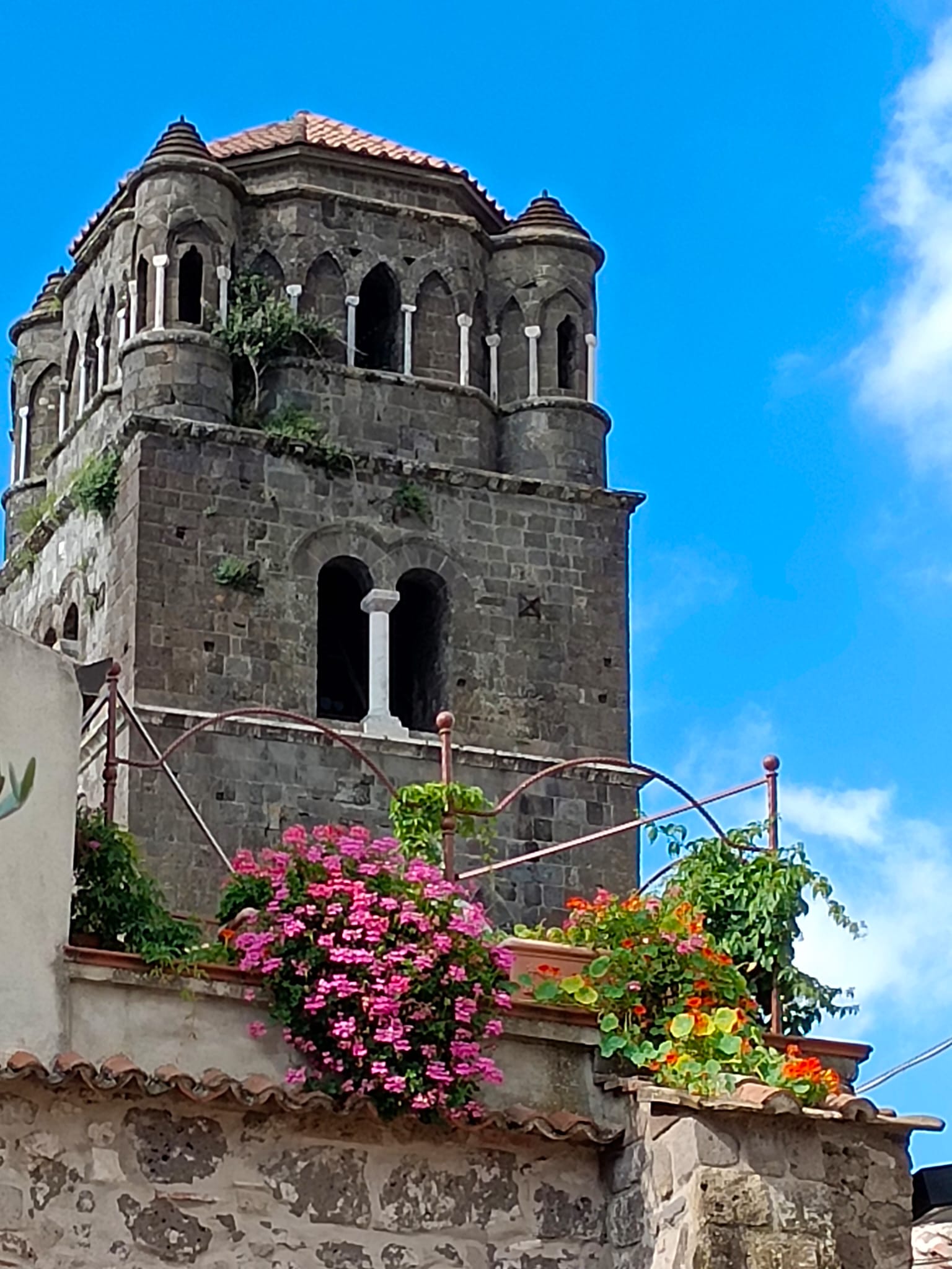 Alzando gli occhi al cielo si notava che la torre campanaria del duomo sovrastava imponente i tetti delle antiche case. Molti ciuffi di infestanti spuntavano ben visibili dalle splendide bifore che andrebbero rimosse per non comprometterne la bellezza.