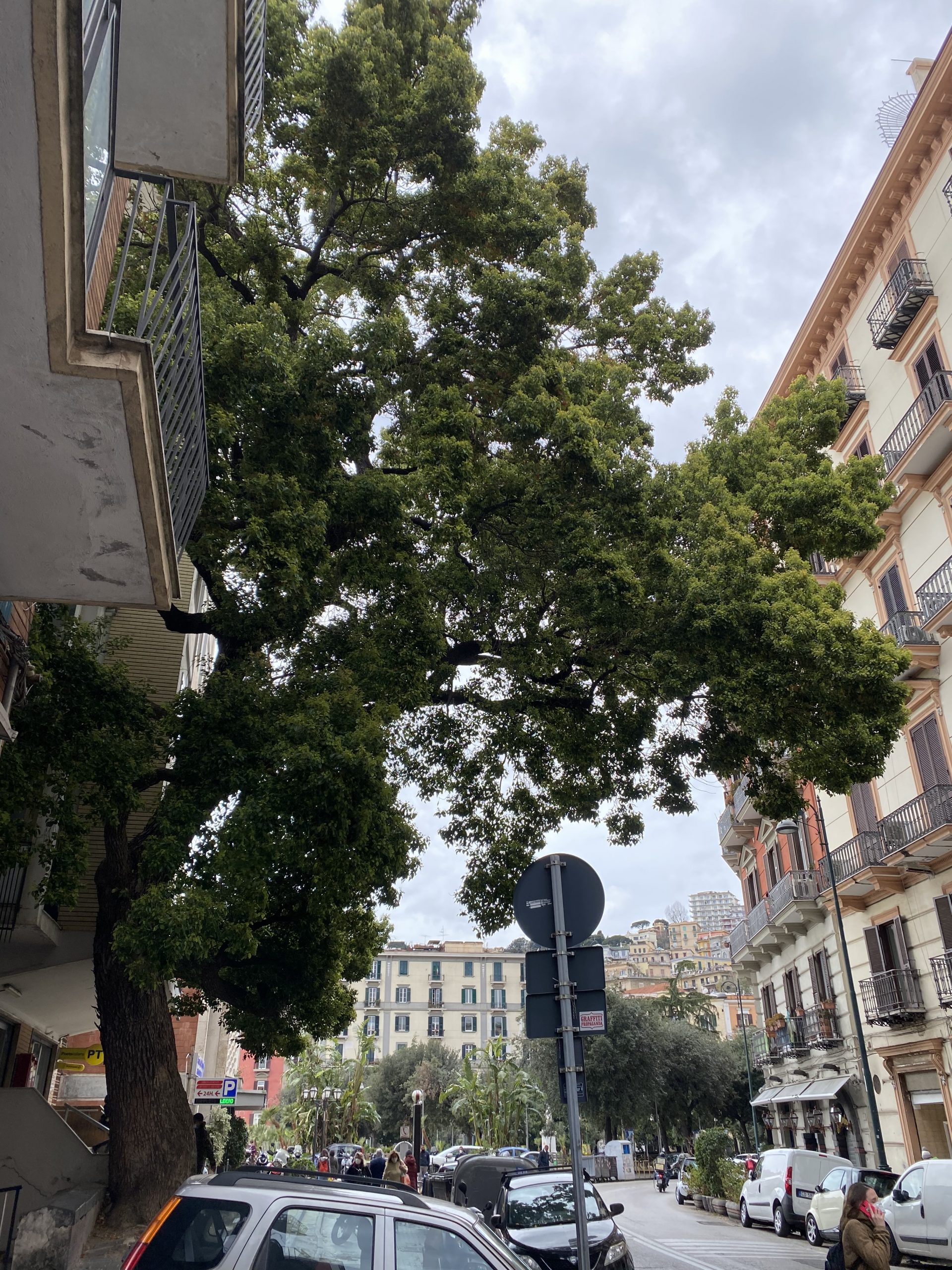 Le sue radici sono su suolo pubblico, all’altezza del civico 649 del Corso Vittorio Emanuele (Napoli). Andatelo a visitare.