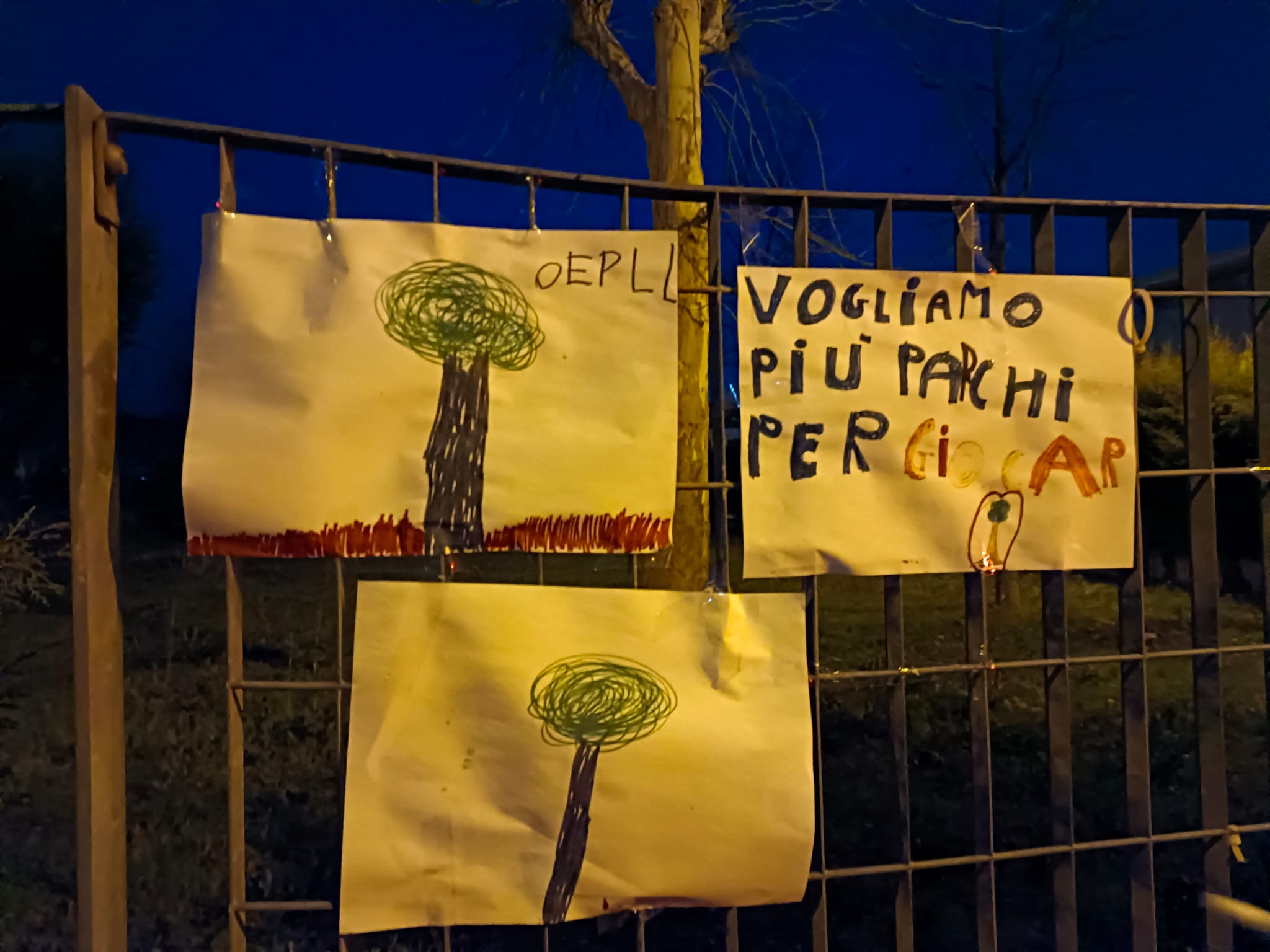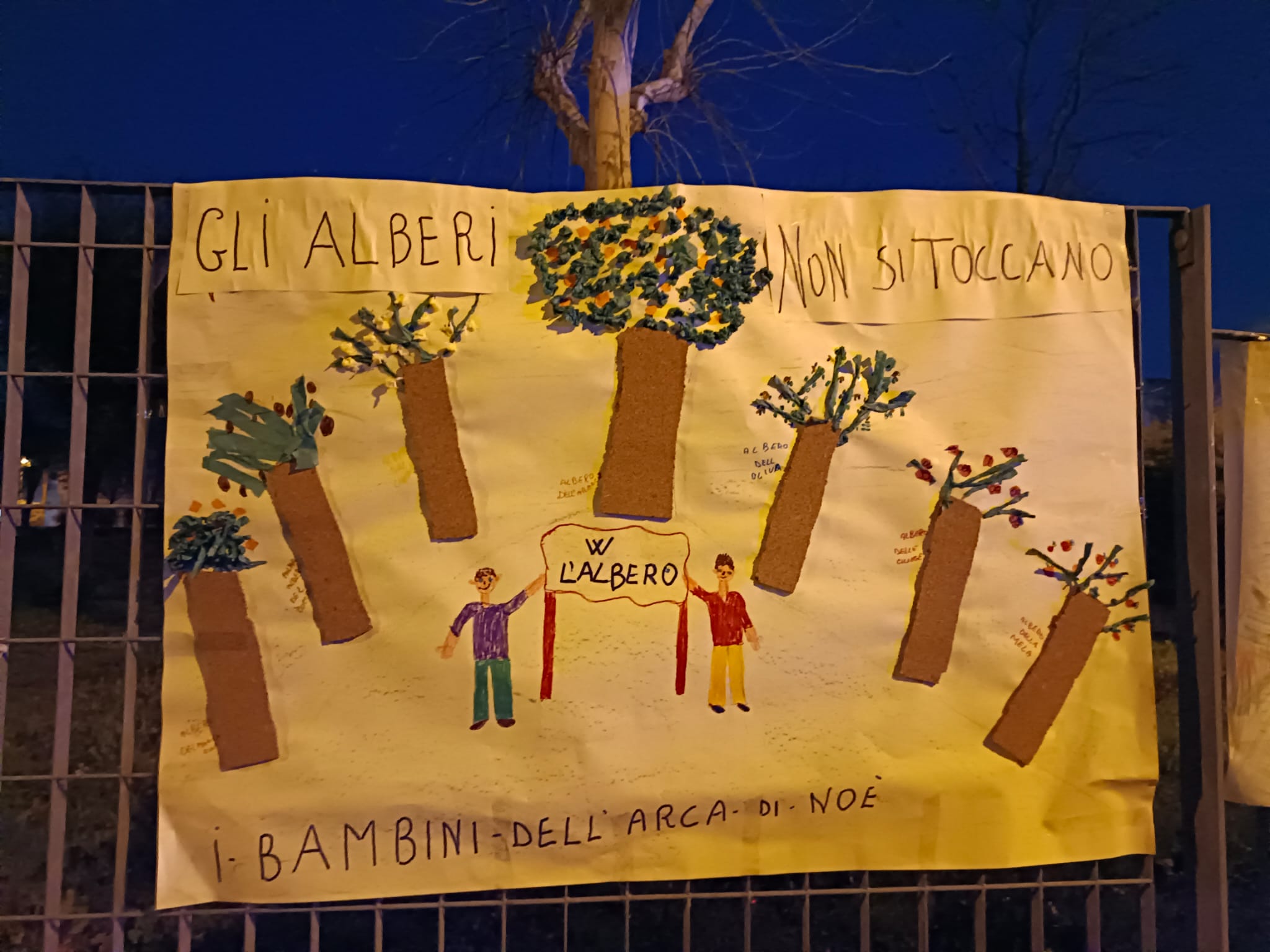 Bellissimi disegni, presenti sulla cancellata dell’Oasi, realizzati dai bambini della Scuola Primaria e dell’Infanzia della Scuola Evangelica L’Arca di Noè, la cui sede è vicina all’area verde minacciata dalla cementificazione.